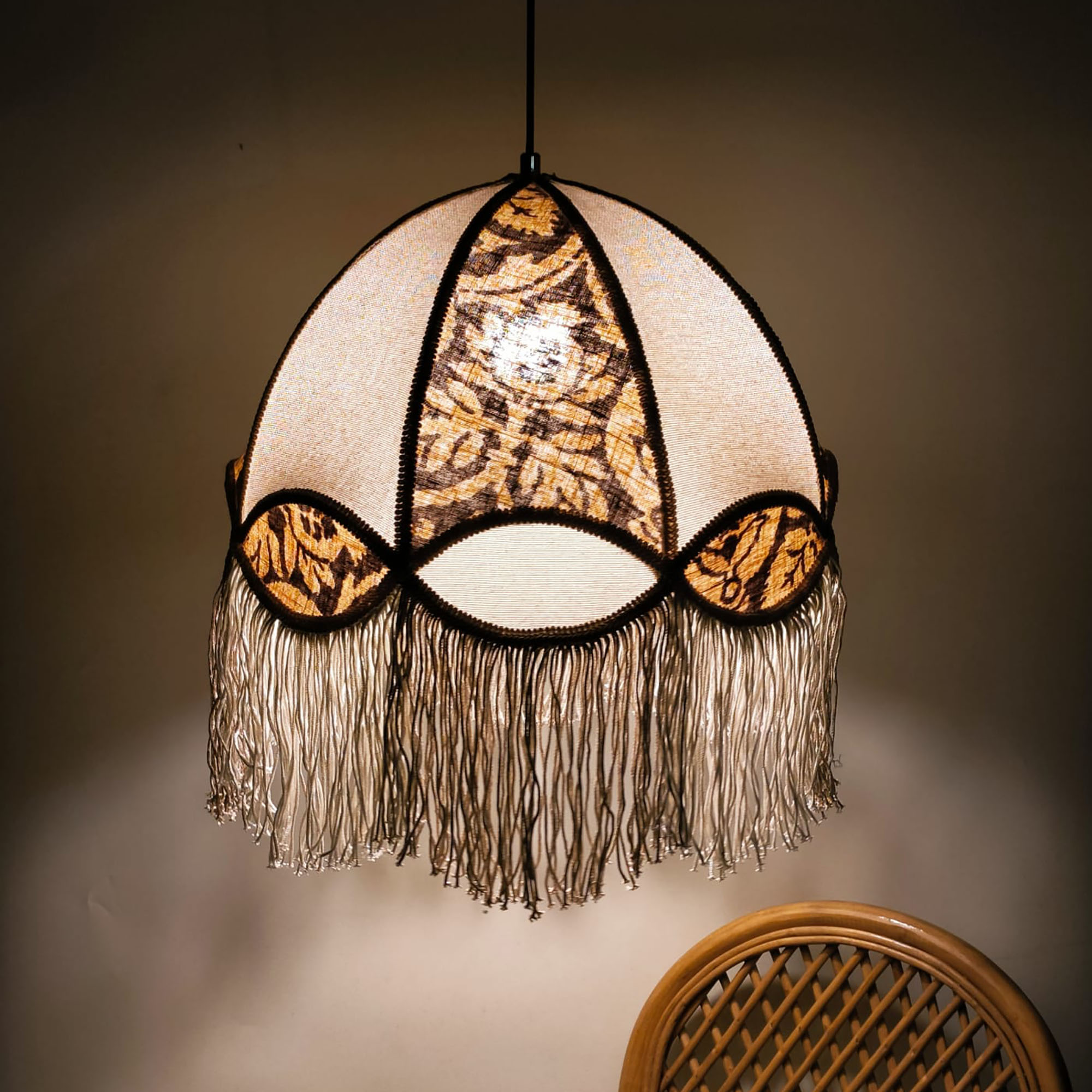 ✔ Sıcak & Davetkâr Aydınlatma – Püsküller ve kumaş detaylardan süzülen ışık ortama huzur ve zarafet katar.