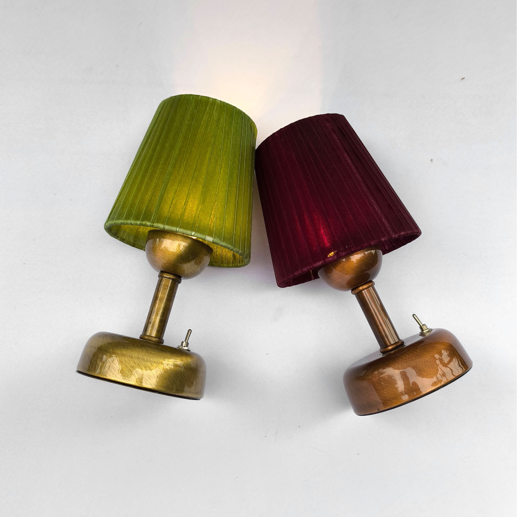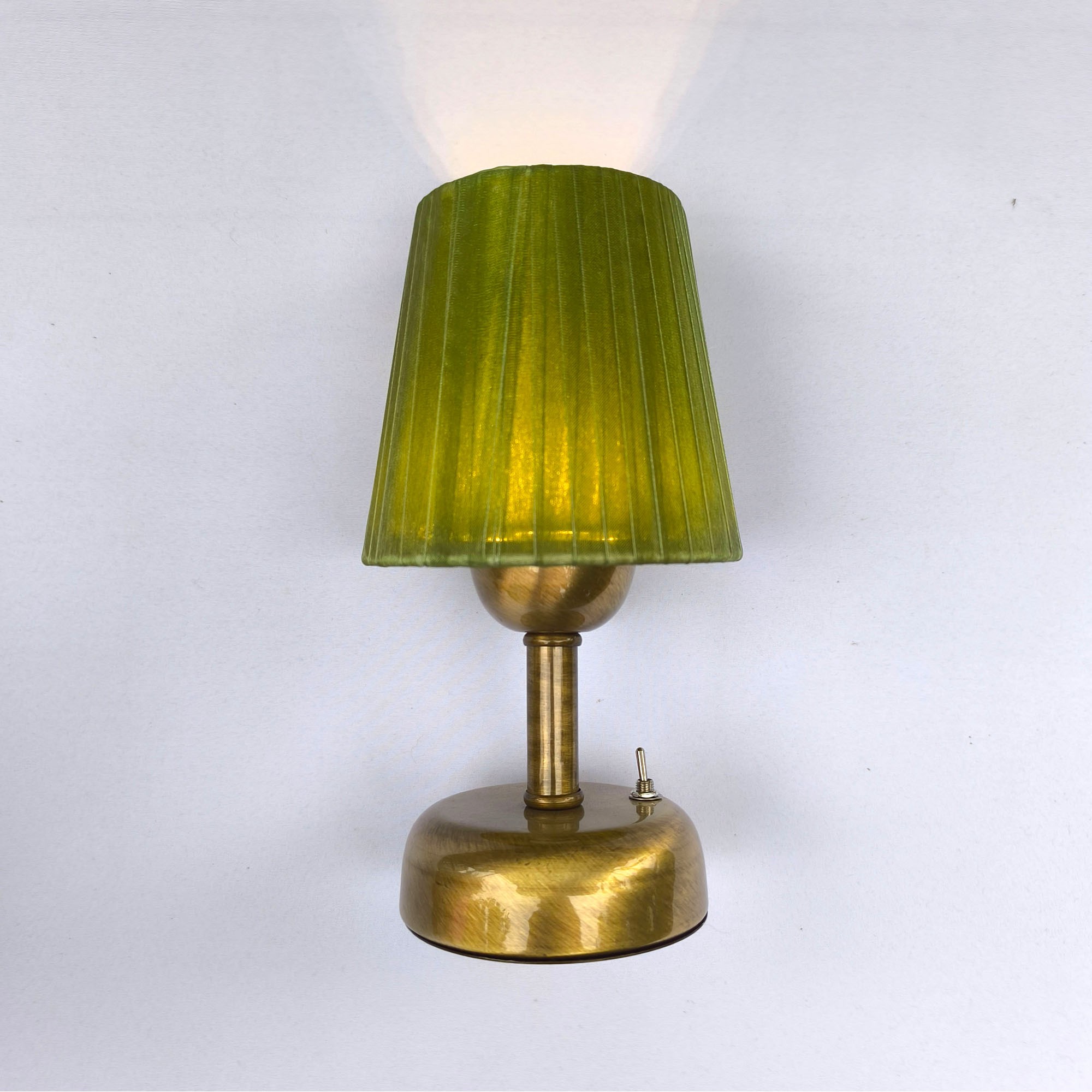 Pilli Masa Lambaları: Gold Gövdeli Pilli Masa Lambası – Yeşil Klasik Pileli Kumaş Başlıklı
