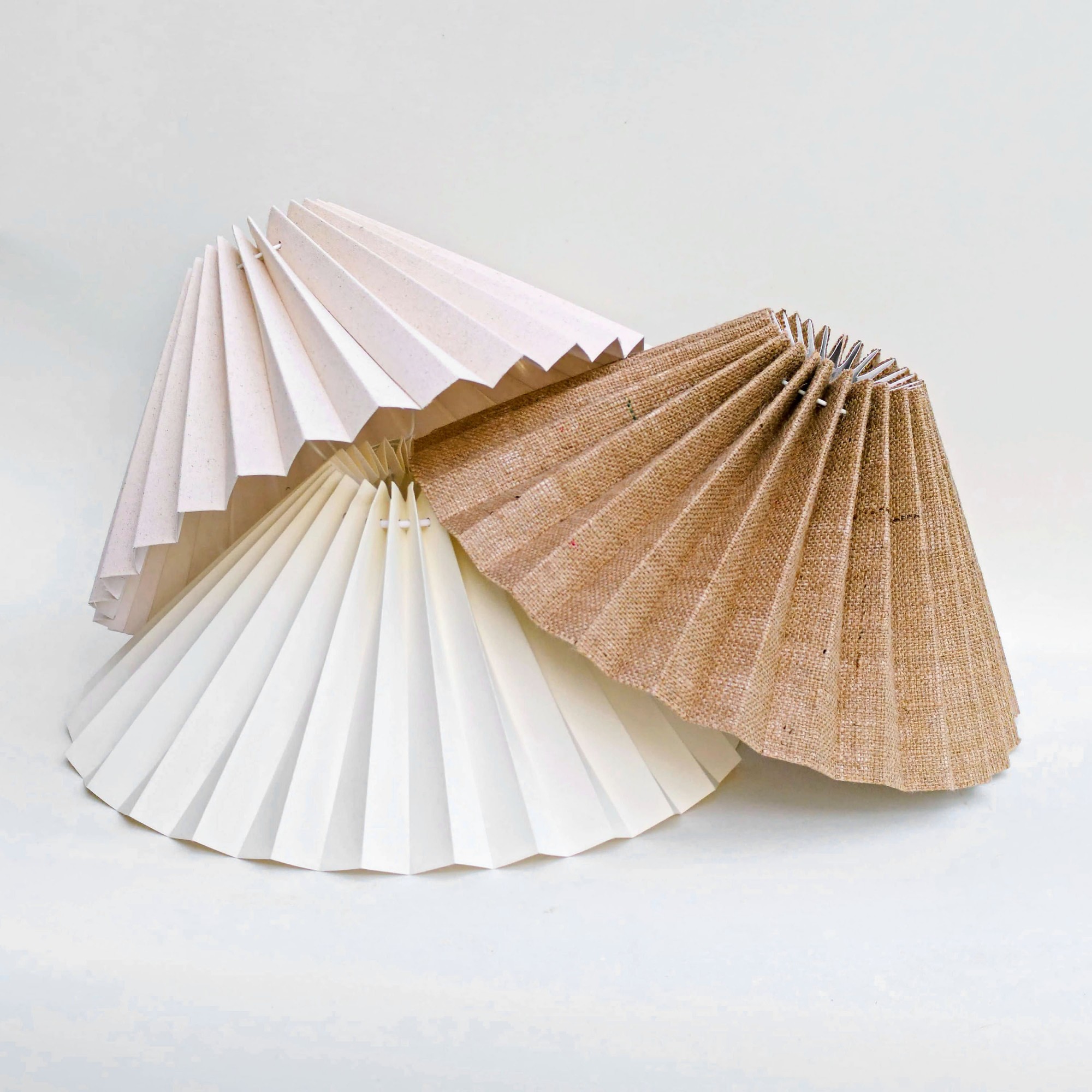 Pleated Perfection Koleksiyonu – El Yapımı Pileli Abajur-Lambader Şapkası, 45 cm Jüt Kumaş