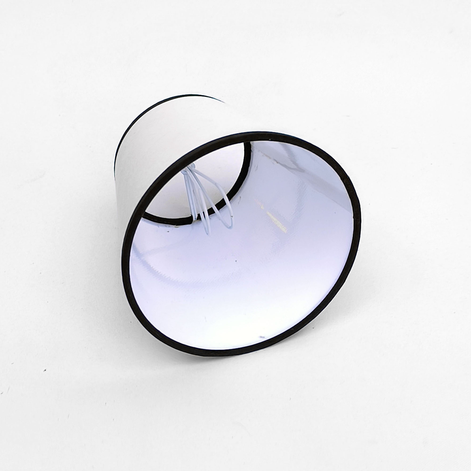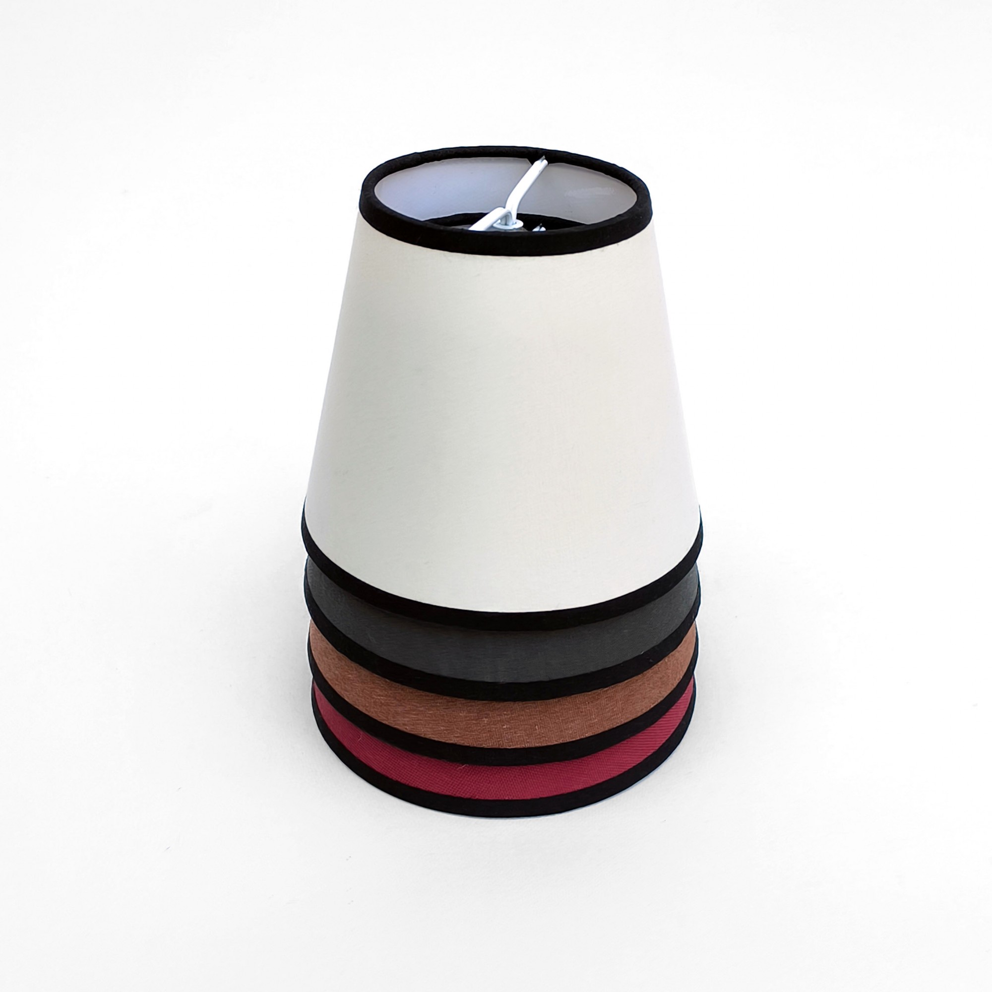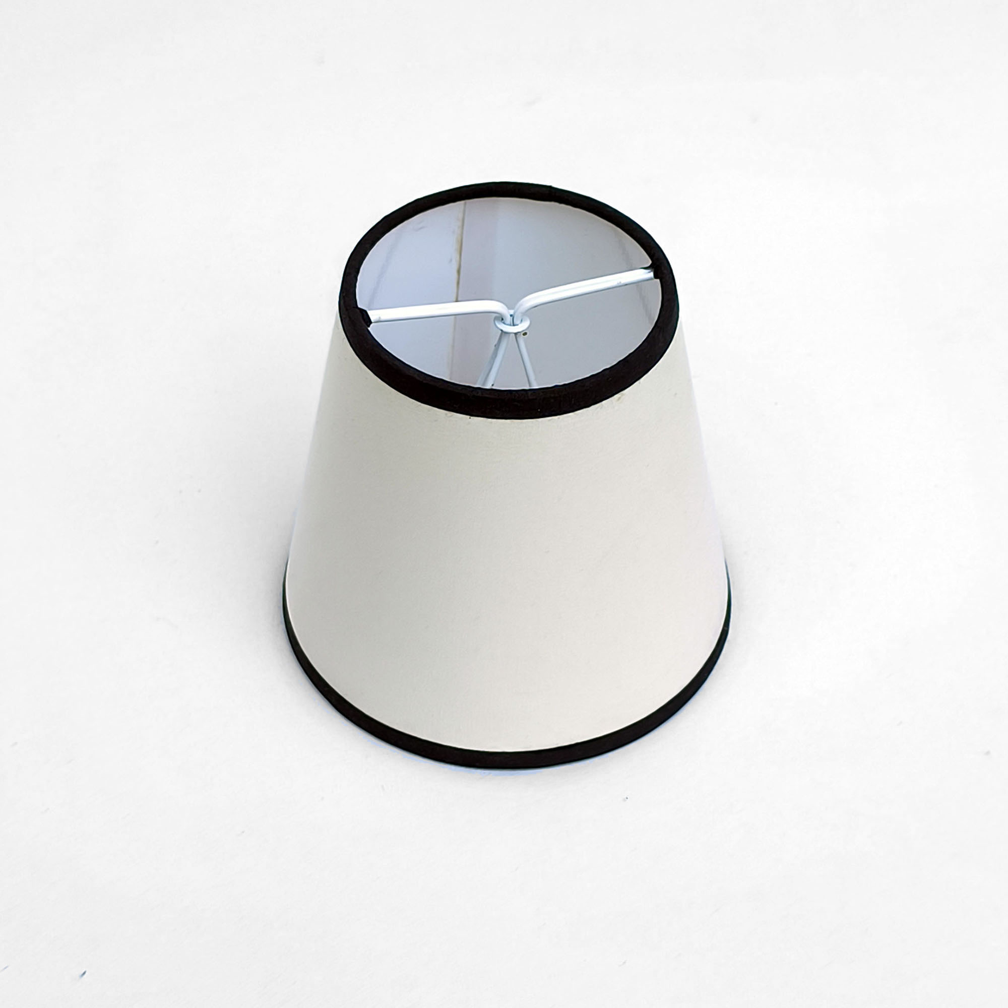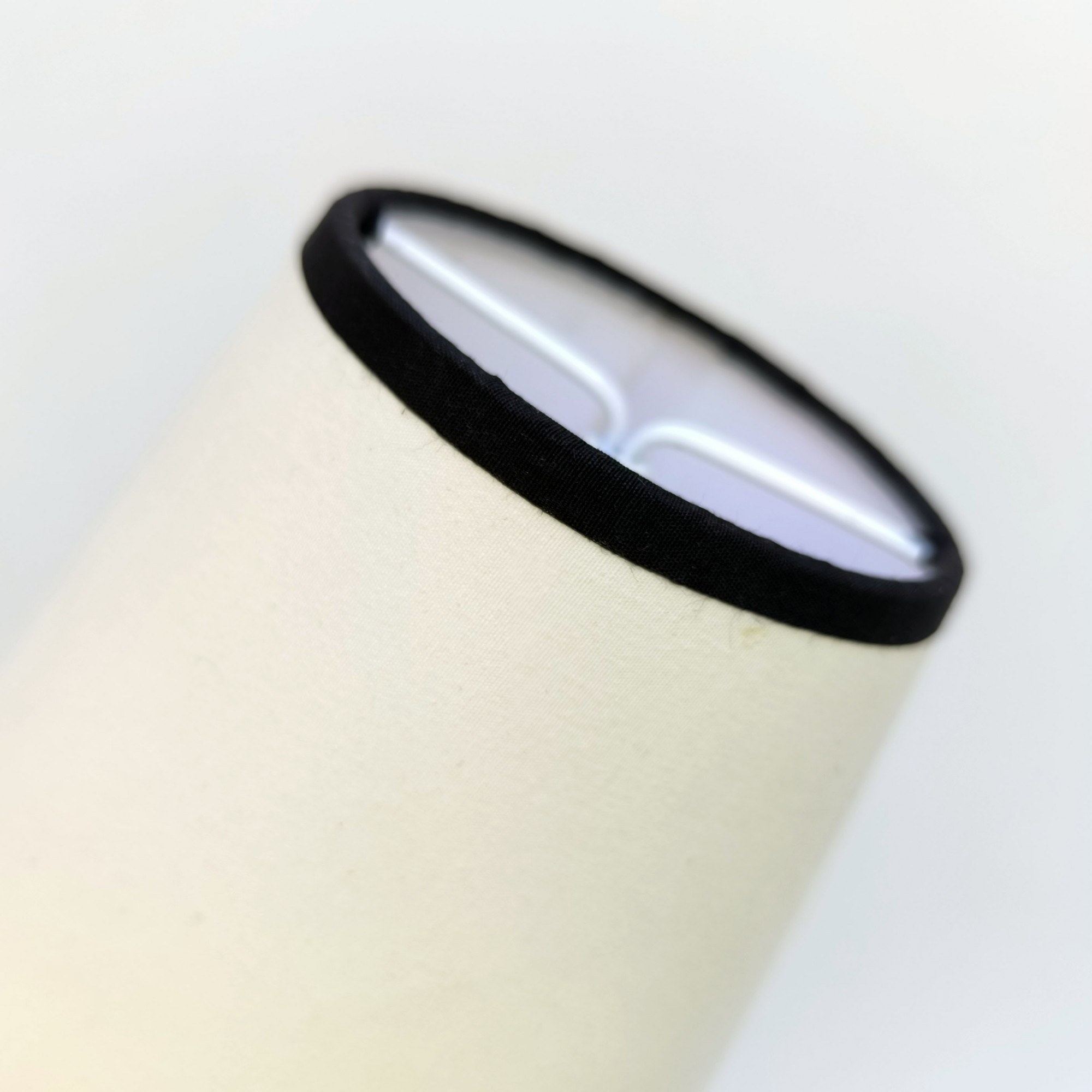 Maşalı Abajur Şapkaları: Linea Koleksiyonu – El Yapımı Krem Kumaş Siyah Bantlı Aplik Şapkası, 14 cm