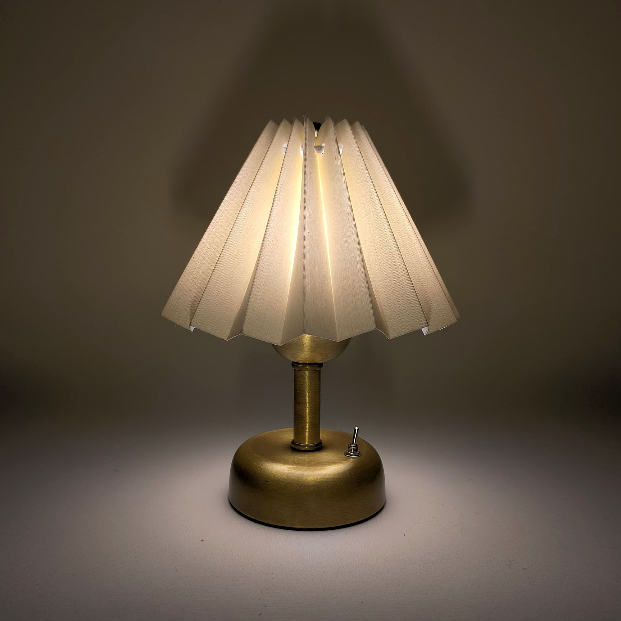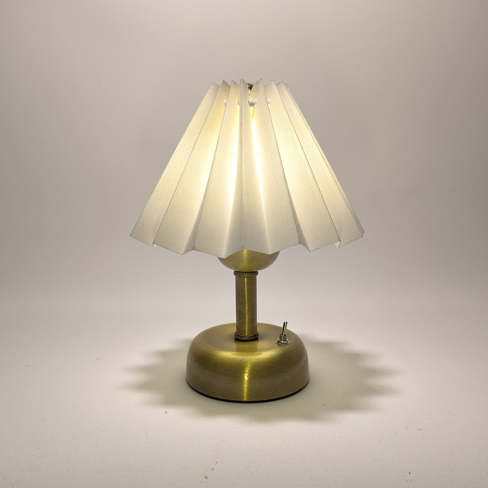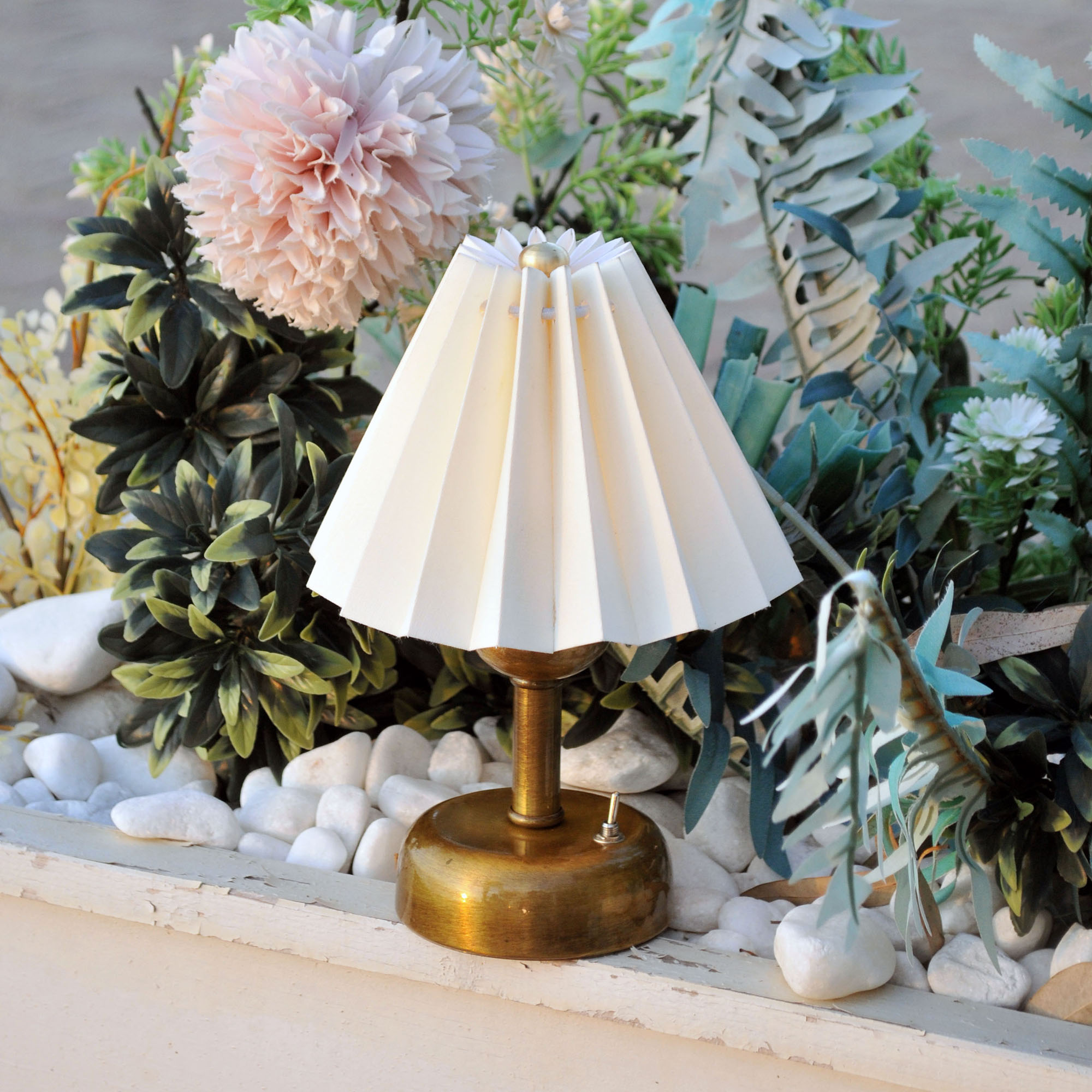 Pilli Masa Lambaları: Parlak Bakır Kaplama Pilli Masa Lambası – Pileli Krem Şapka