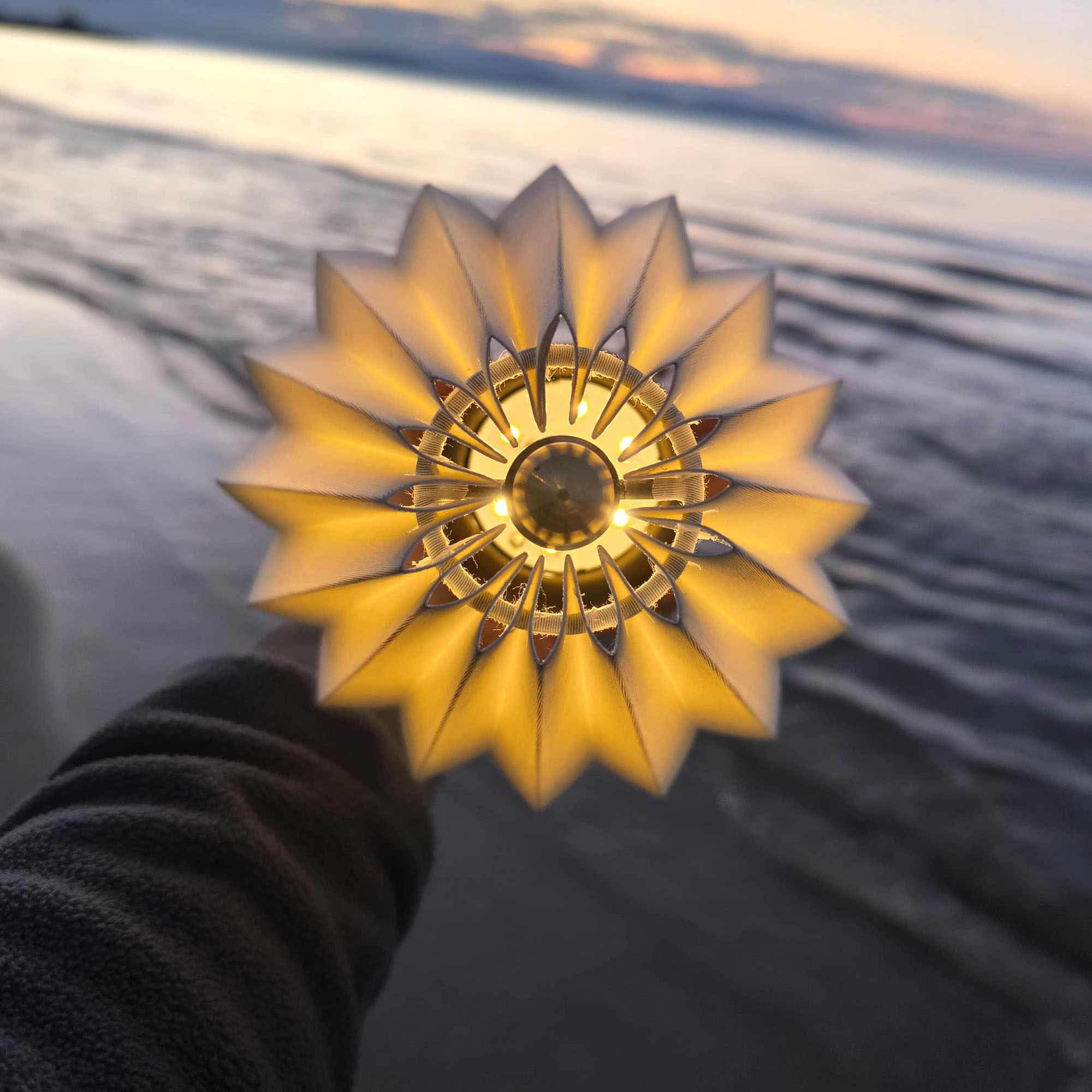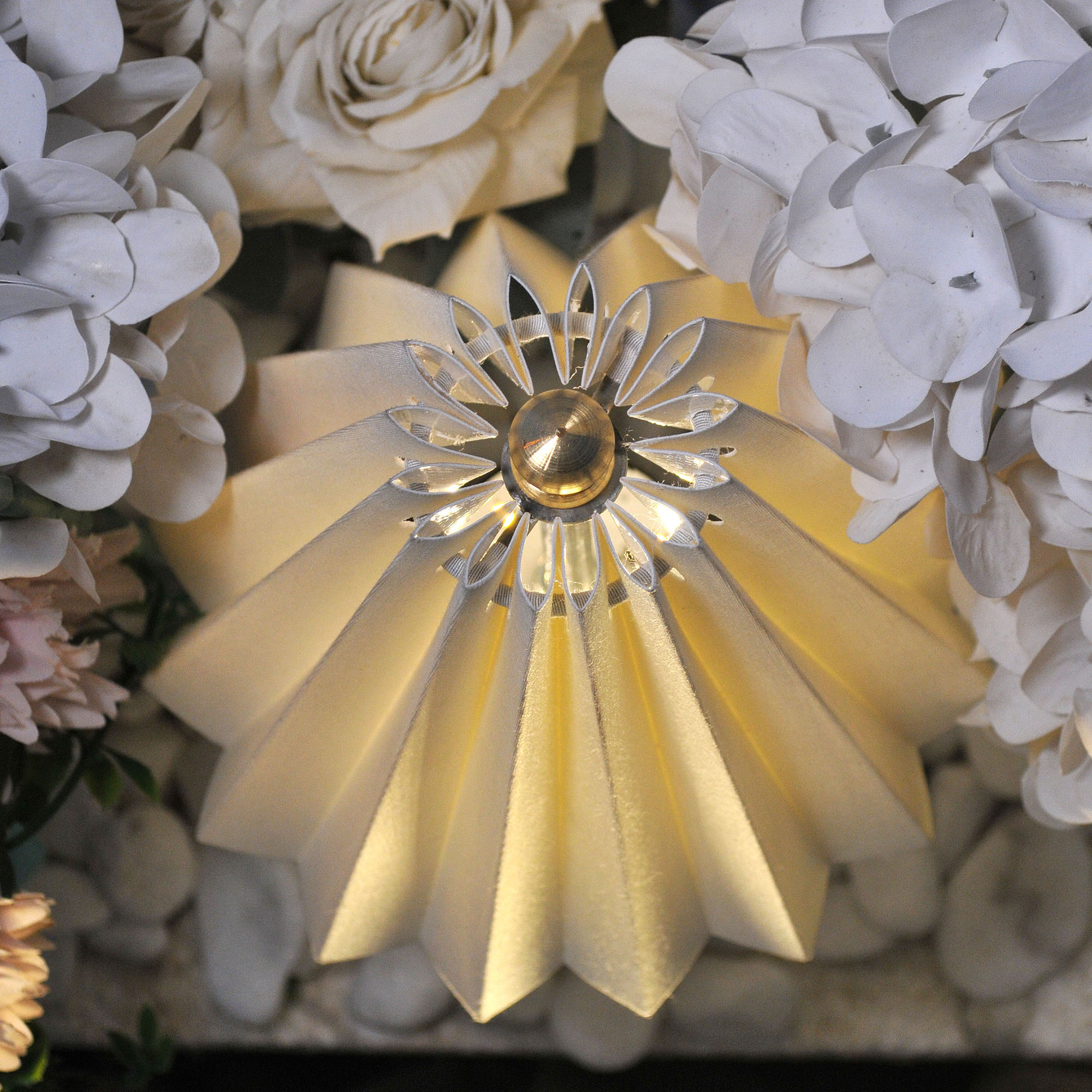 Modern ve Zarif Tasarım: Parlak bakır metal gövde ve pileli krem şapka, zarif bir estetik yaratır ve mekânınıza sıcak bir hava katar.