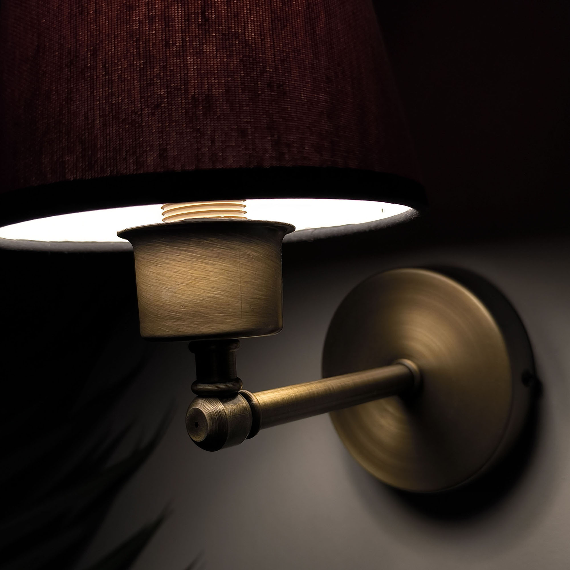Modern Aplikler: Mini Glow Vintage Gold Duvar Apliği Bordo Başlıklı Siyah Biyeli