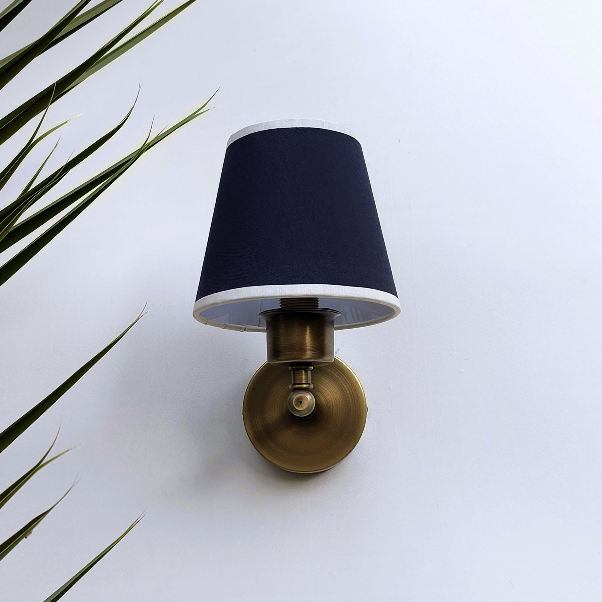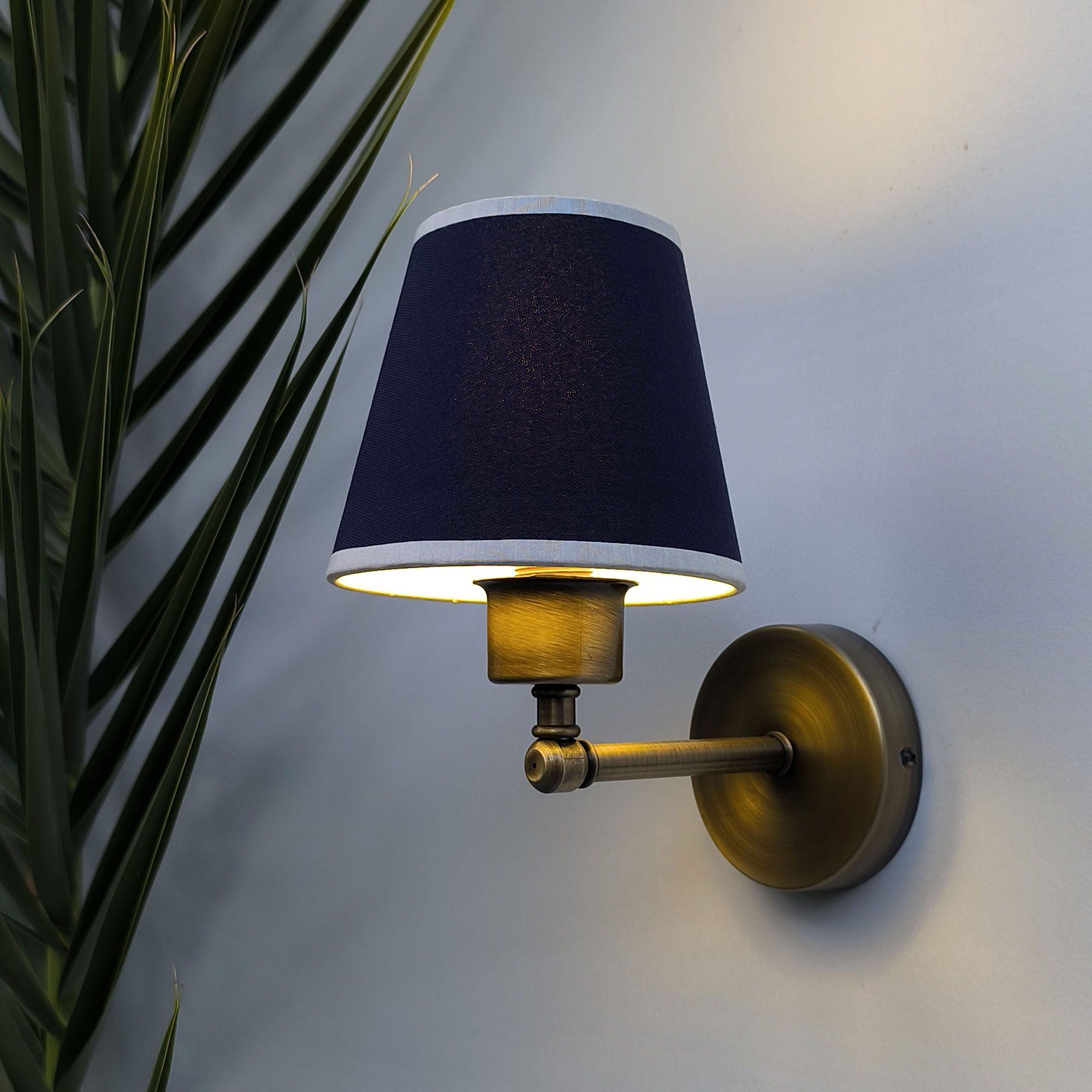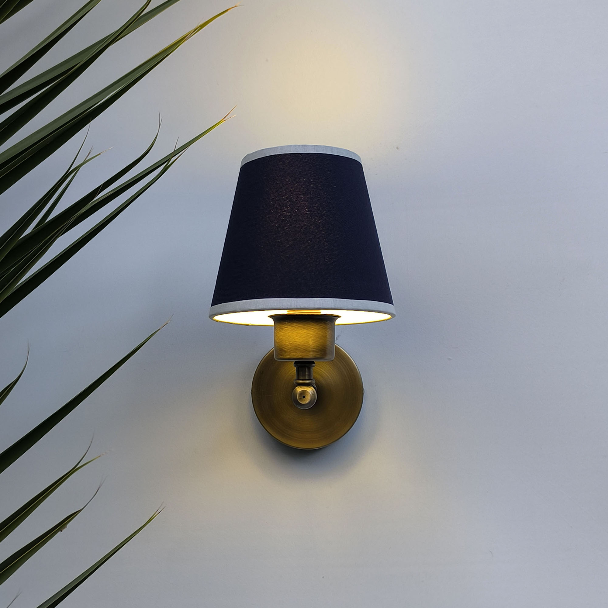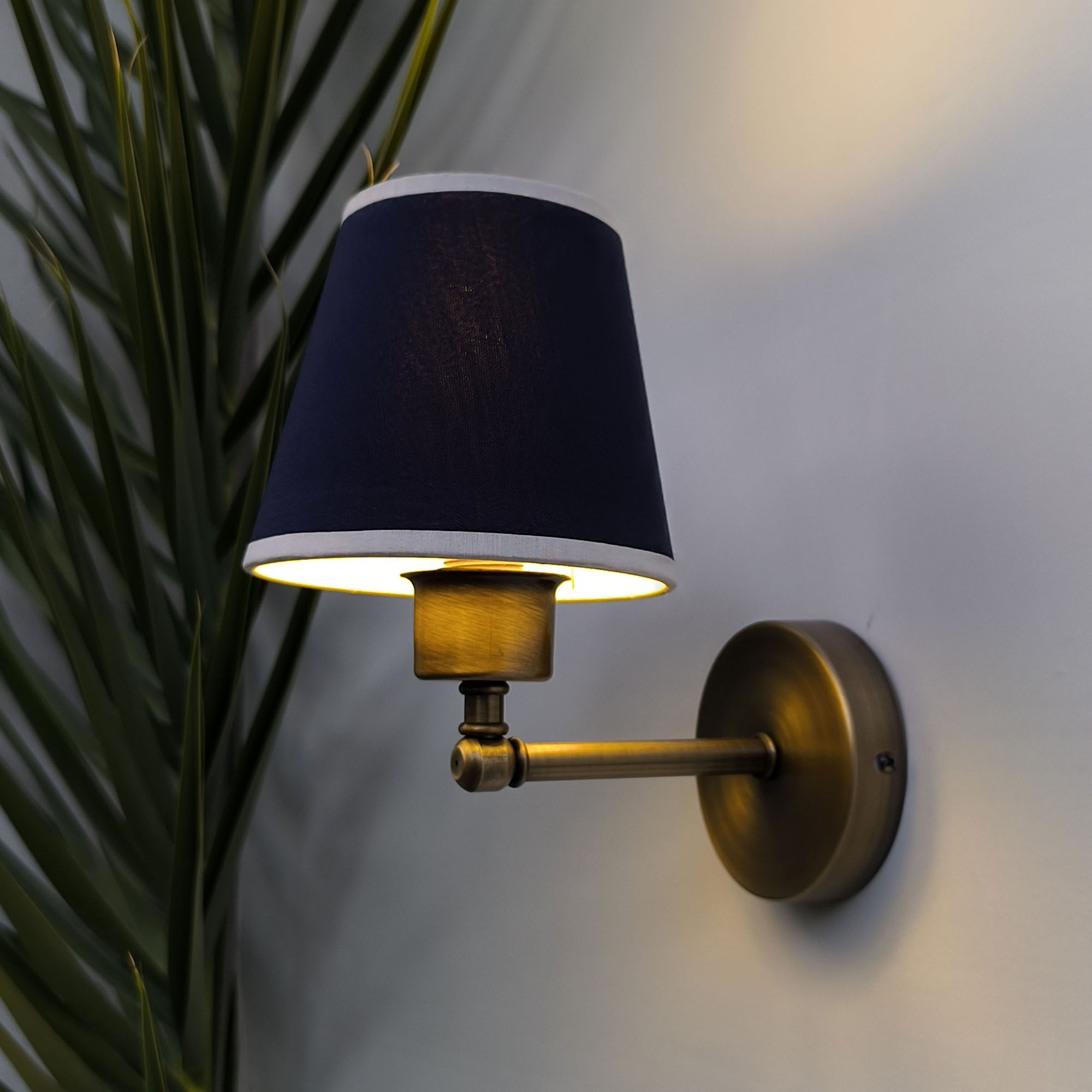 Modern Aplikler: Mini Glow Vintage Gold Duvar Apliği Lacivert Başlıklı Beyaz Biyeli