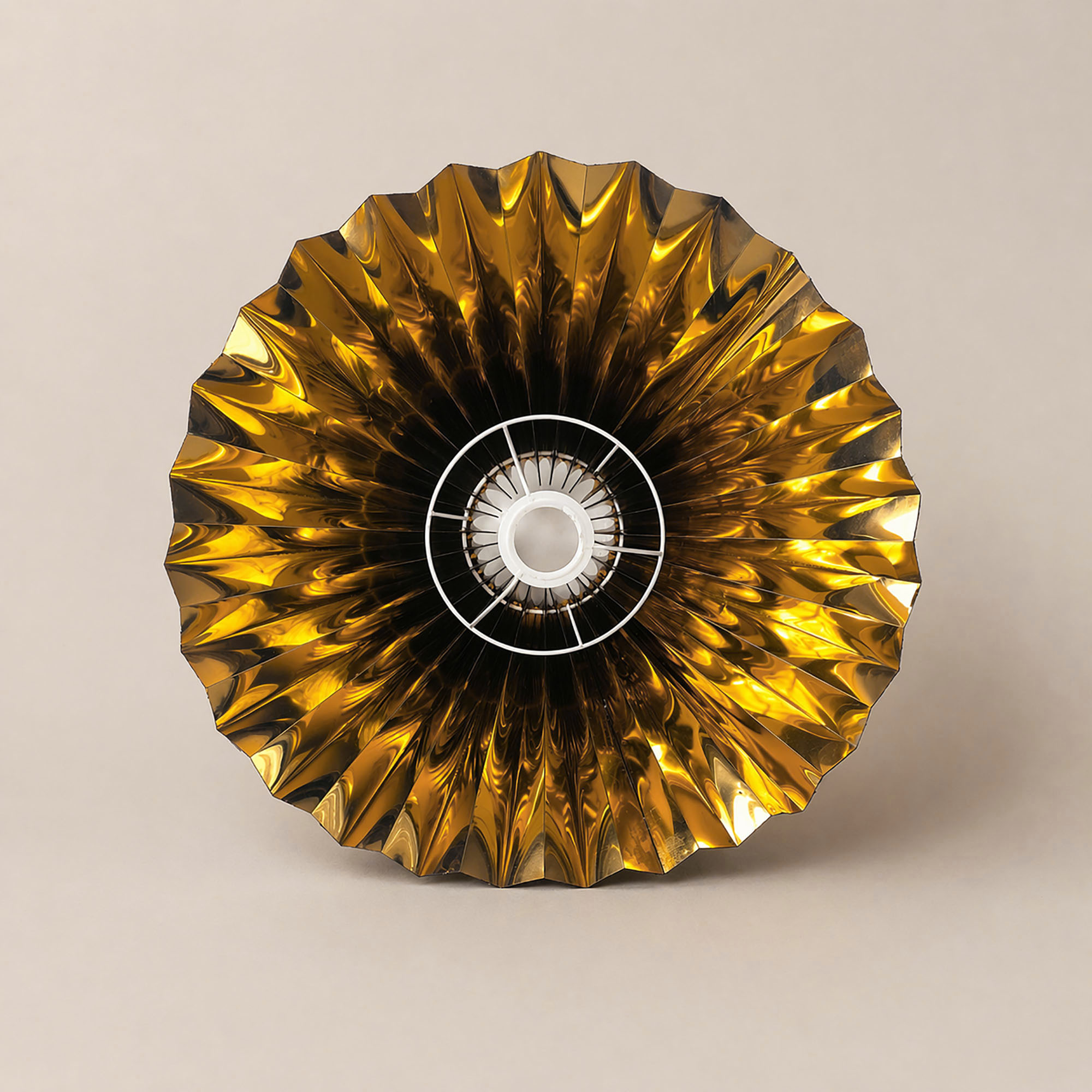 İç yüzeyde kullanılan gold yansıtıcı kaplama, ışığın yoğunluğunu artırarak daha doygun, daha yumuşak ve daha davetkâr bir aydınlatma sağlar. Bu özellik özellikle loş ve ambiyans odaklı mekanlarda fark yaratır.