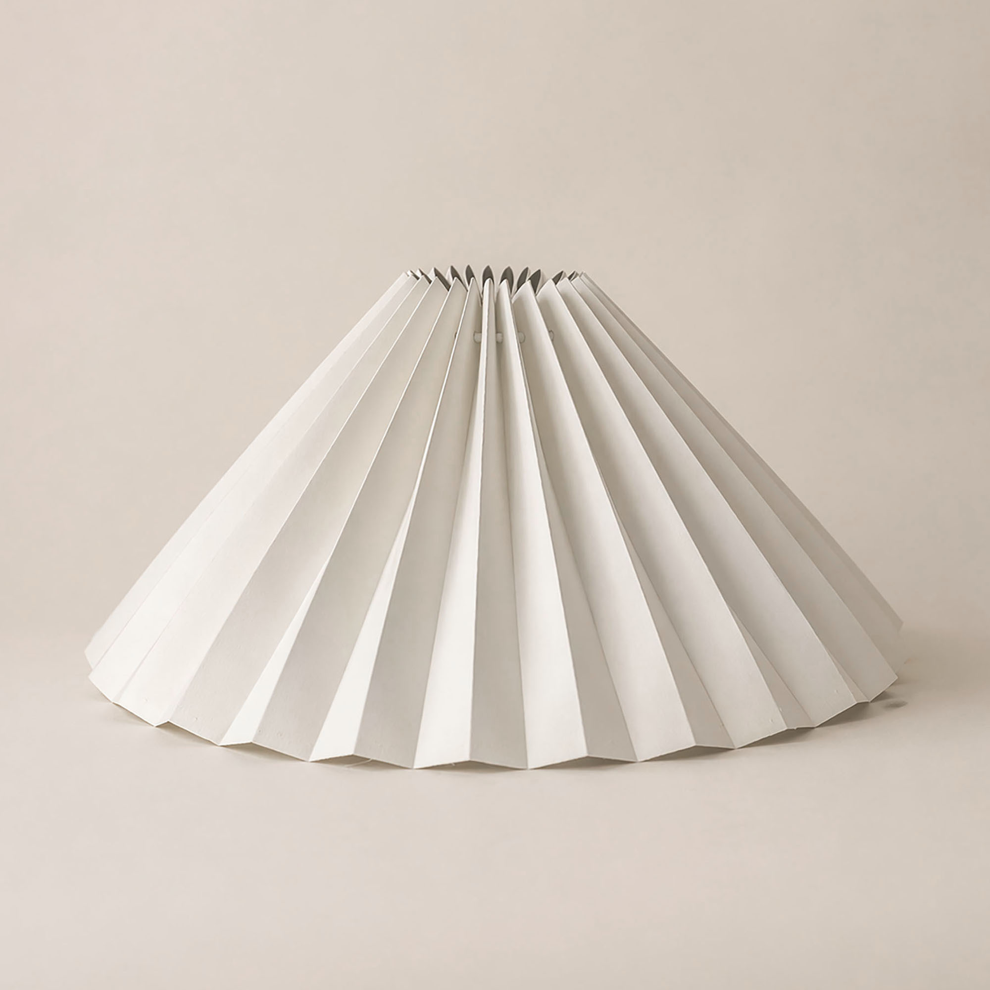 Şık Tasarım: El yapımı pileli tasarım ve düz krem kumaşın zarif görünümü, içteki gold yansıtıcı kaplama ile birleşerek sofistike bir ışık yansıması sağlar.