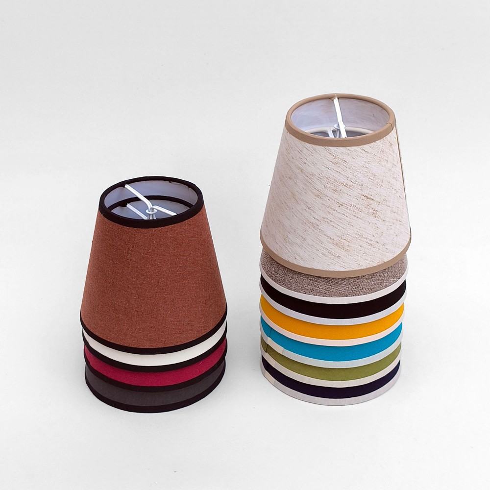 Maşalı Abajur Şapkaları: Linea Koleksiyonu – El Yapımı Kiremit Kahve Kumaş Siyah Bantlı Aplik Şapkası, 14 cm